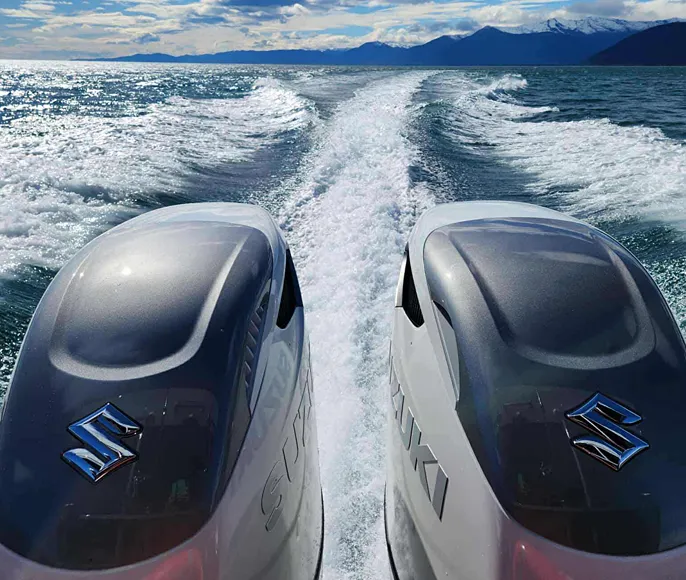 - Twin 325 hp Suzuki outboards – reliable, fast, and safe