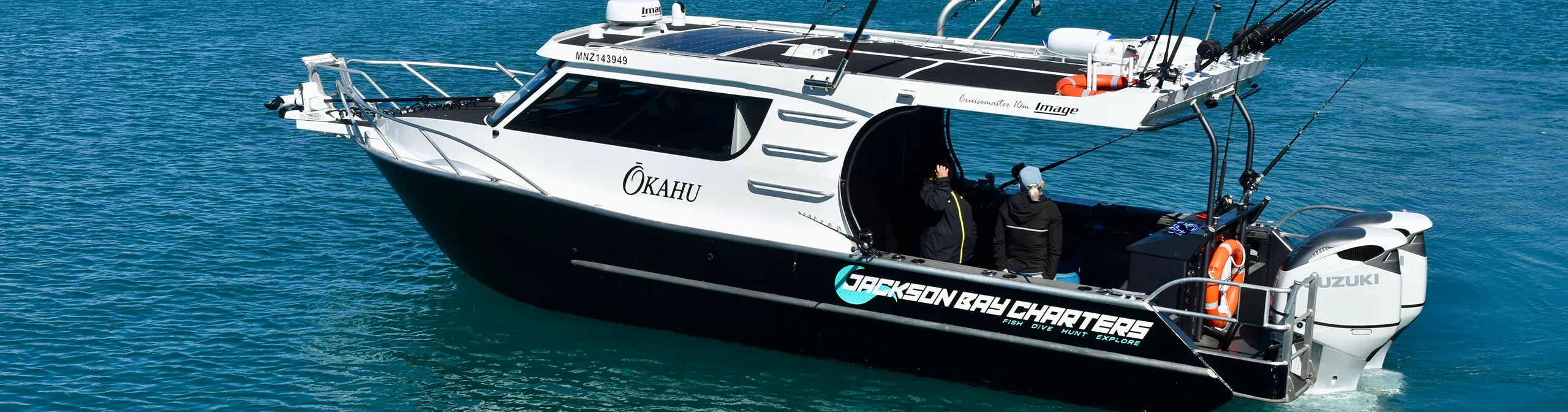 Meet ŌKAHU, our custom-built 10m Image Cruisemaster, launched in 2025 and fully surveyed by Maritime NZ. Designed with comfort, stability, and safety in mind, ŌKAHU is the perfect platform for your ultimate fishing and exploration experience in Jackson Bay. Our boat name Ōkahu is a traditional Māori name associated with the bay and its surrounding land, used by Kāi Tahu (Ngāi Tahu) long before European arrival. Paying respect to the local heritage.
